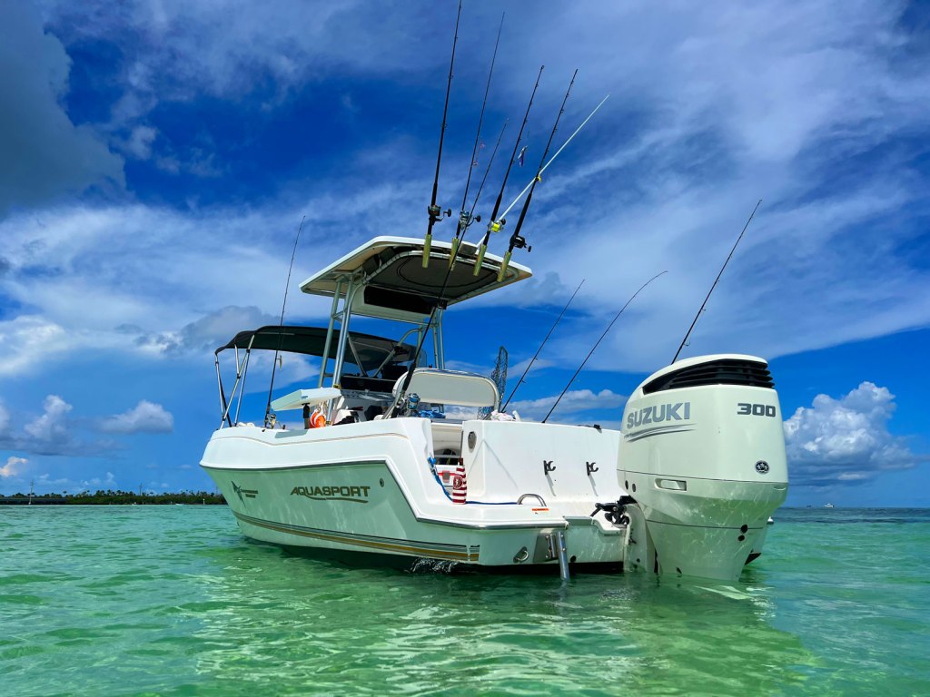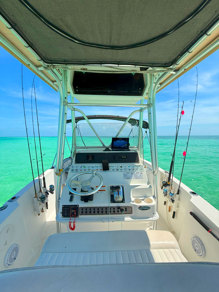 Our charter vessel is a 24’ Tournament Series Aquasport center console, purpose-built for the dynamic waters of the Florida Keys. Whether you’re bridge fishing, exploring the back country, or heading to the reefs, this boat delivers performance, versatility, and comfort for every type of angler.